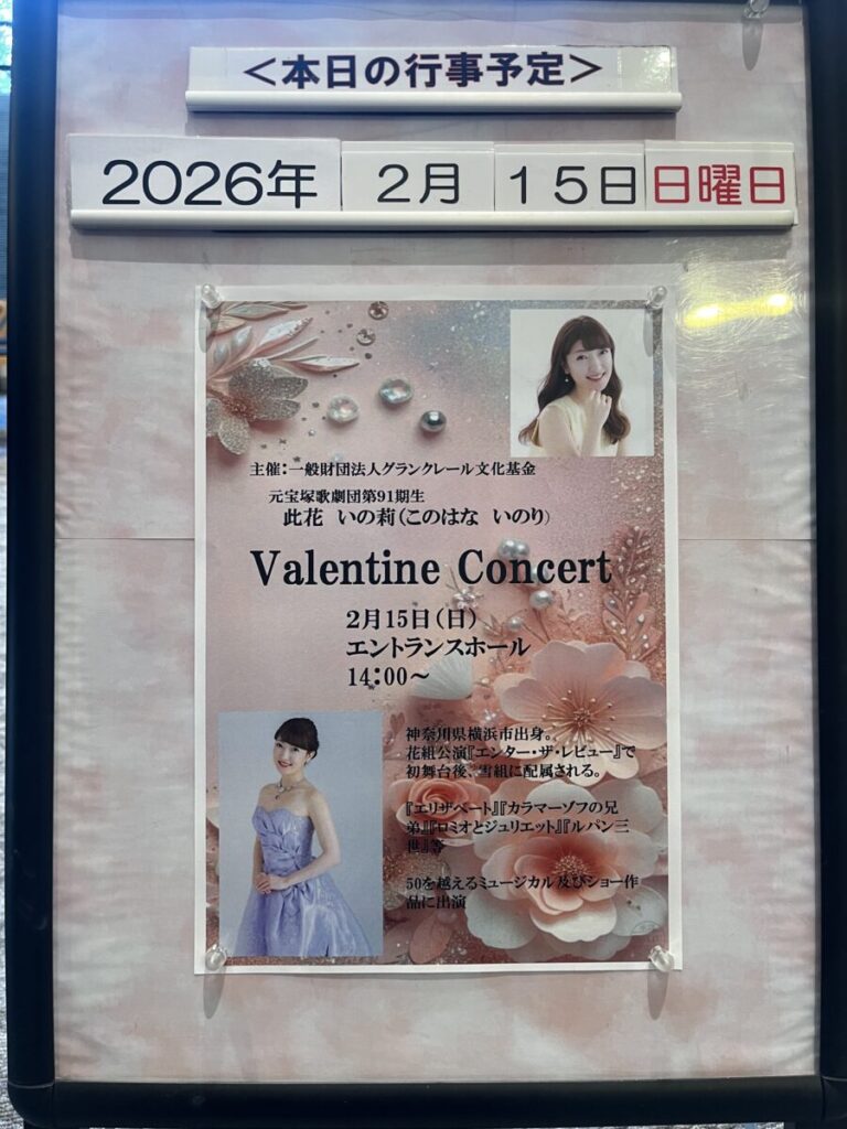 🌹2月15日 バレンタインコンサート開催 〜元タカラジェンヌ・此花いの莉さんをお迎えして〜