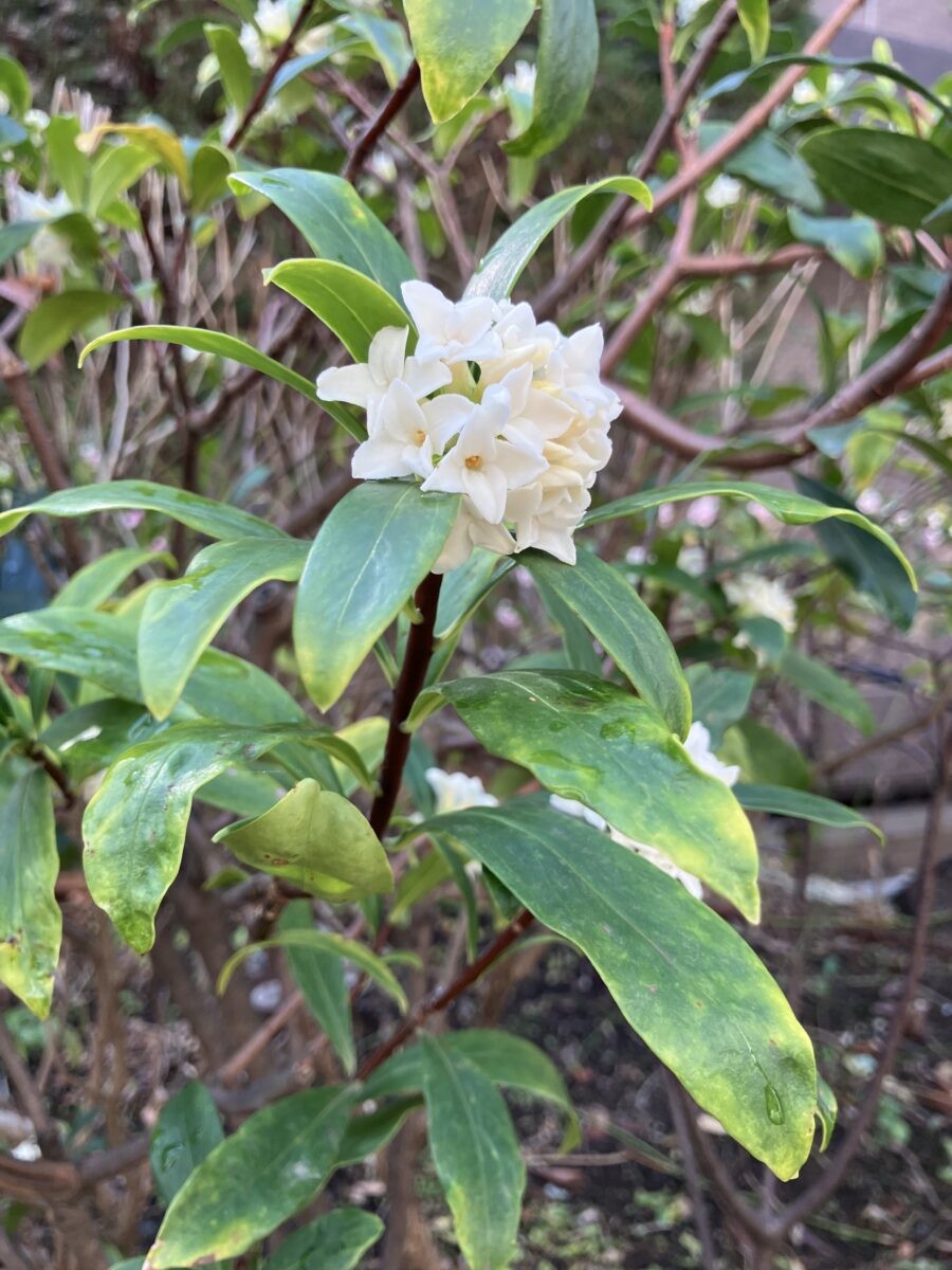 沈丁花の花言葉は「栄光」や「不滅」。季節の変わり目を優雅に彩ってくれています。