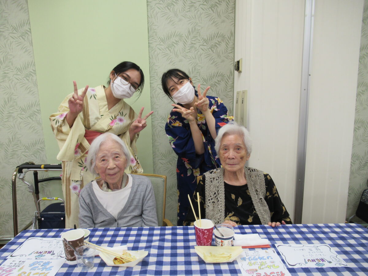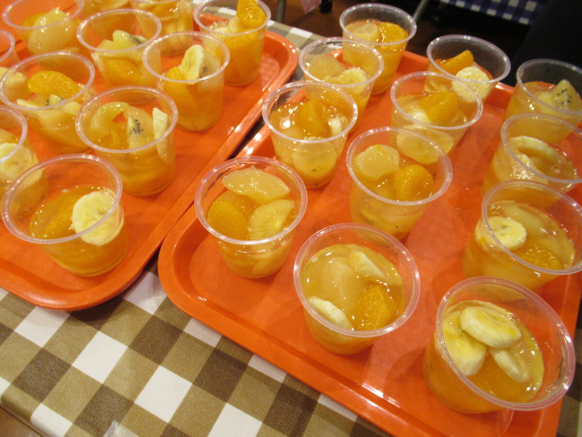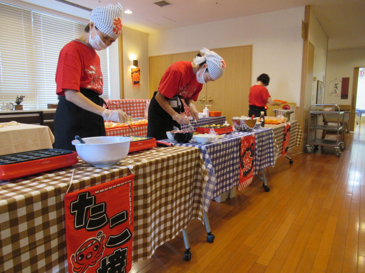 スタッフ手作りのたこ焼き、フルーツポンチ、ソフトクリームを