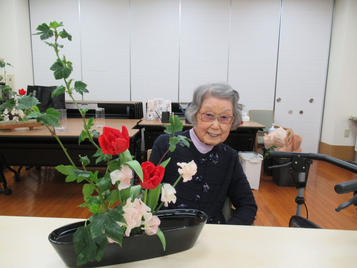 3月 生け花・フラワーアレンジメント 2026 3/10 グランケアあざみ野 イベント 暮らしの様子 2026年3月10日 3月度の生け花・アレンジメントのご様子です🌷 今月の花材は 生け花:チューリップ・スイートピー・木いちご アレンジメント:チューリップ・スイートピー・なでしこ・木いちご・マルバルスカス チューリップの赤と 葉の緑のコントラストが 鮮やかで 春らしさが溢れますね✨ グランケアあざみ野 イベント 暮らしの様子