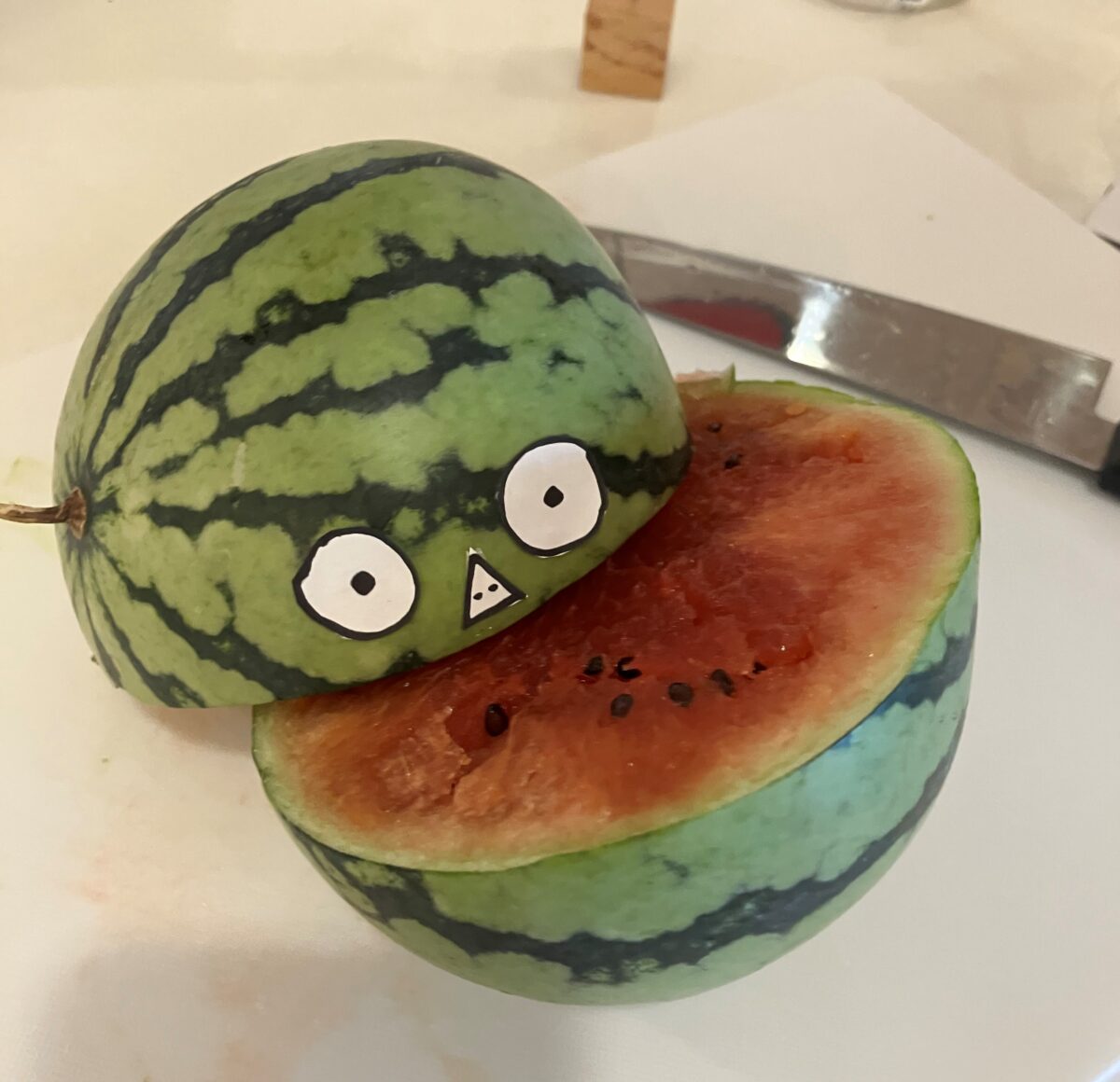 切った瞬間にスイカの匂いがダイニングに広がり真っ赤な綺麗な色をしておりました。
