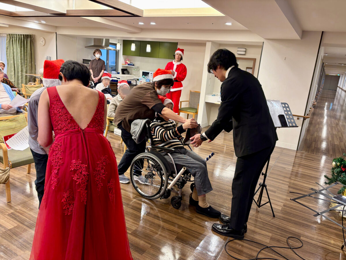 最後に演奏のお二人に感謝のプレゼント。何度もありがとうを伝える方も。素敵な楽しいクリスマスのひと時となりました。この後スタッフから皆さんに素敵なプレゼントもありました🎁