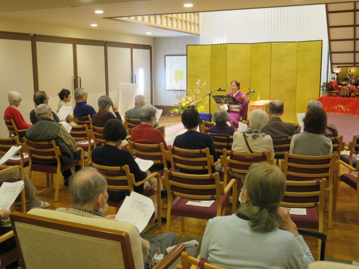 ご入居者からのリクエストに応えて演奏いただき