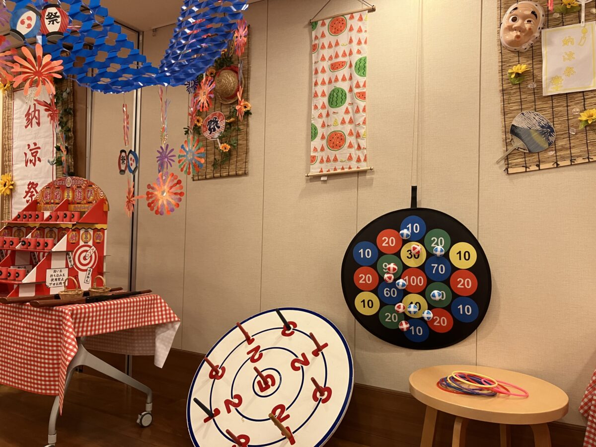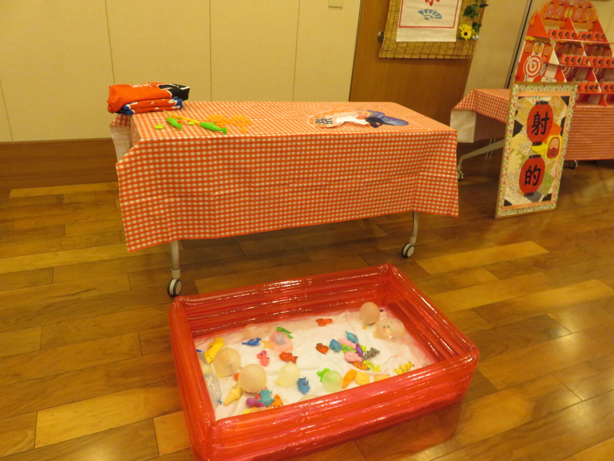 ヨーヨー釣り、射的、輪投げと縁日のお祭りでよく見る遊びを準備しました。