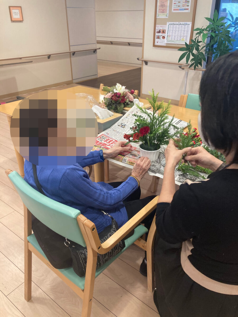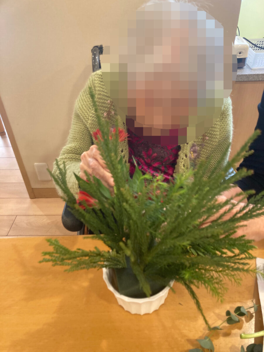 12月もフラワーアレンジメントを実施しました。