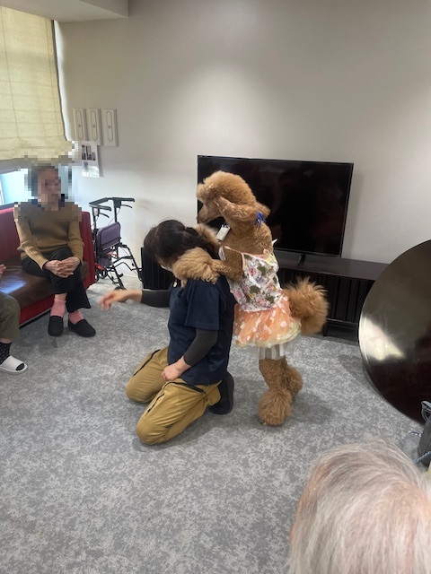 むつみちゃんは甘えんぼさんでもあるようで、ご入居者お一人お一人とハグをしてくれました。