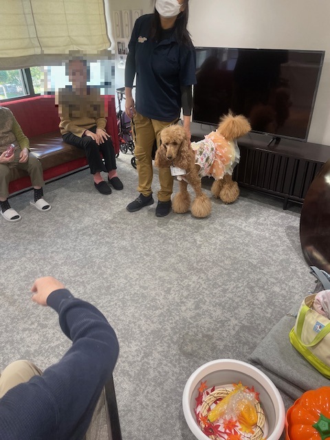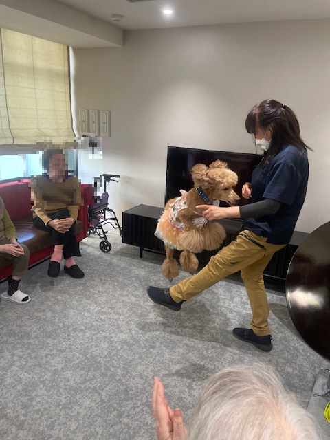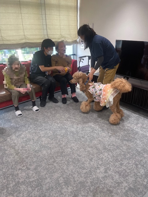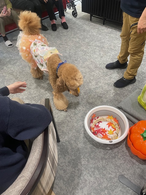 ご入居者が投げたおもちゃを投げてくれたご入居者の元へ届けてくれたりとハンドラーのいう事を