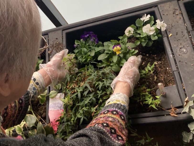 花の植え替えだけで満足せず、水やりなどのお手入れもスタッフ・ご入居者とで一緒に行います。