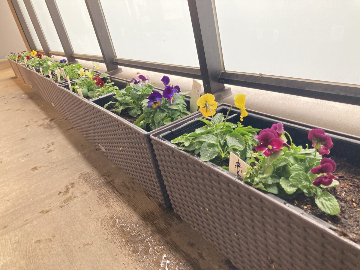 スタッフが購入してきたものを植え替えて頂くだけではなく、ご入居者と一緒に店舗に出掛け、花を選定するところから行うのが『自立支援・生きがい支援』を意識したグランクレール立川スタイルです。