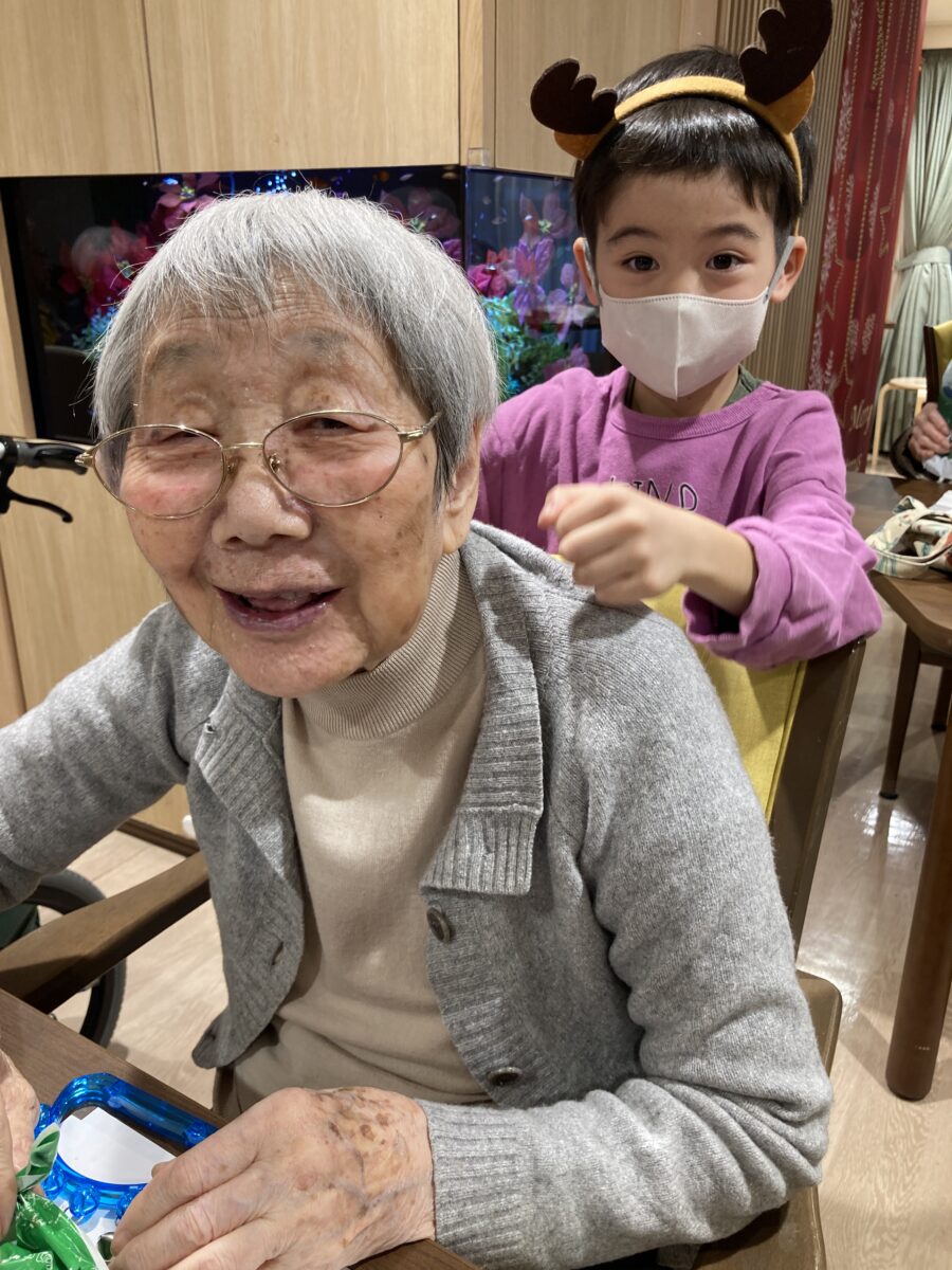 大きなサンタクロースに、可愛いトナカイ、ご入居者にも笑顔が溢れ、スペシャルゲストにはスタッフのお子さまも参加。
