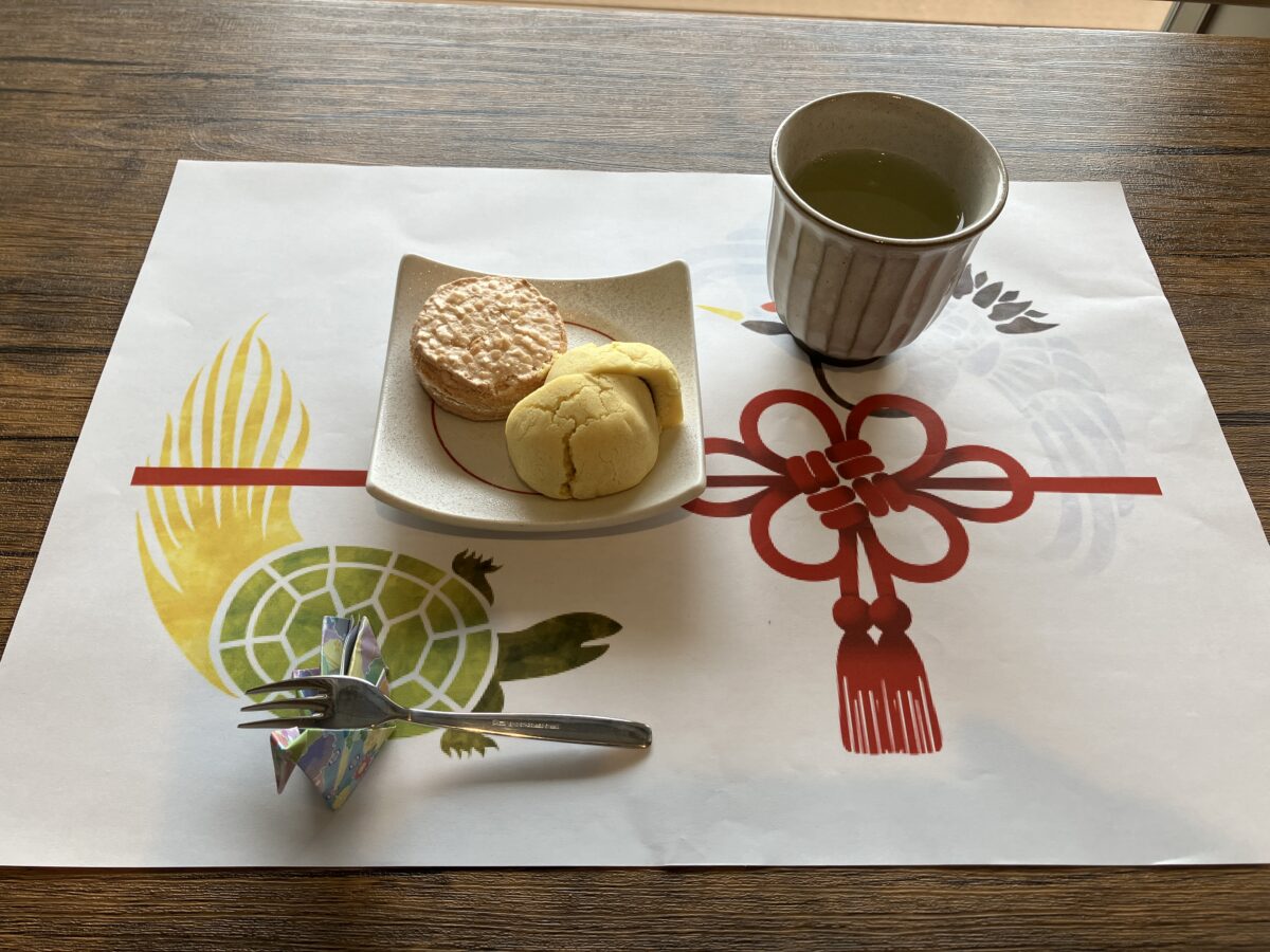 皆様にお菓子とお茶とメッセージカードをお配りいたしました。