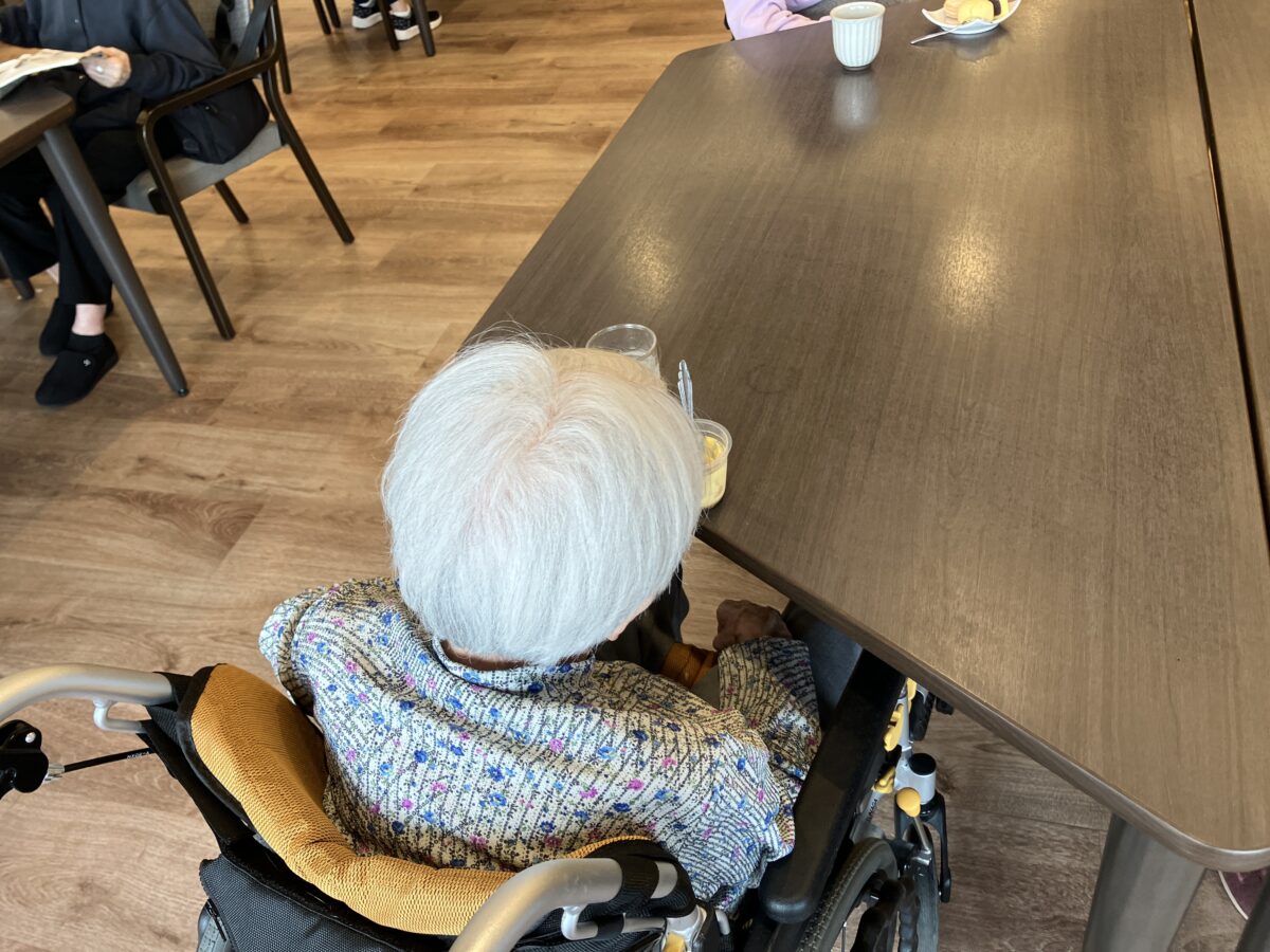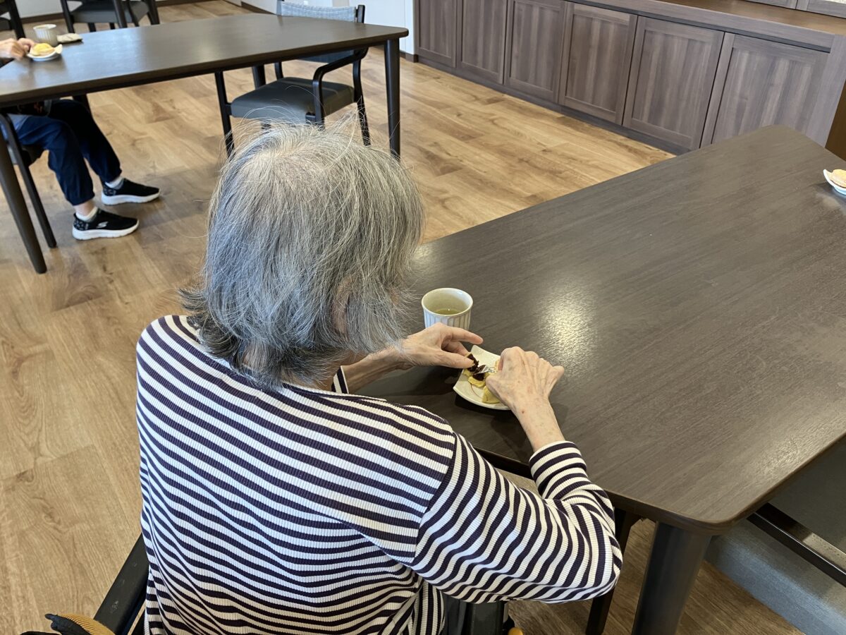 ケアフロアでは1日早いですが、敬老のお祝いで皆様にお菓子とお茶を提供いたしました。