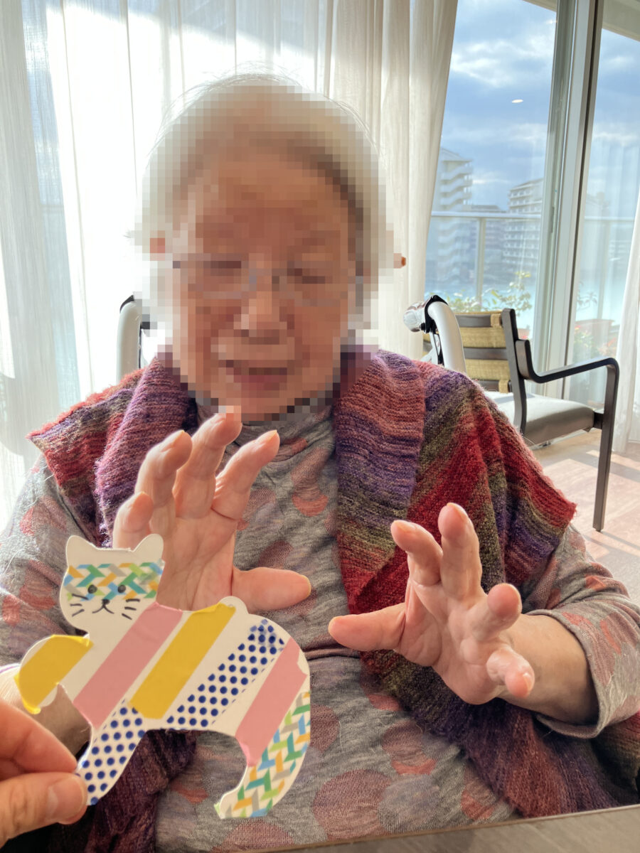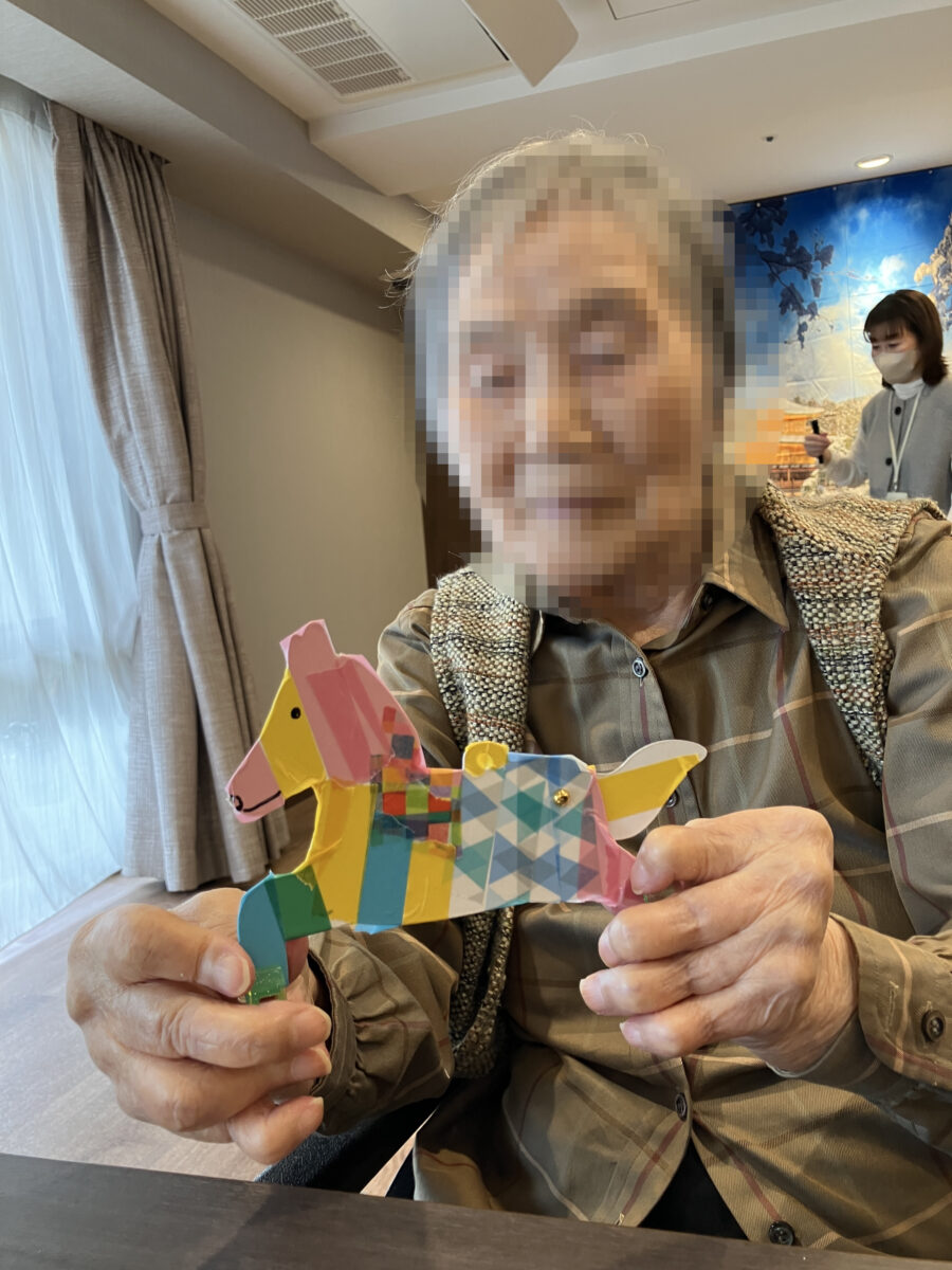 完成後は「見てみて!」とスタッフに見せては大変喜ばれ、お部屋の前に大切に飾る方もいらっしゃいました。