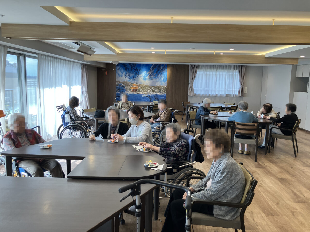 平日にも関わらず、ダイニングスペースにて14名のご入居者が集まり