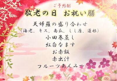 敬老の日お祝い膳 2025 9/15 グランクレール青葉台 2025年9月15日 敬老の日の本日は、皆様の健康とご長寿の願いをこめて、特別献立をご用意いたしました。お祝いにふさわしい綺麗なお料理が並んでいます。これからも健康に気を付けて笑顔でお過ごしいただけますように。 グランクレール青葉台