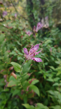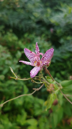 そして、中庭を見てみると、可憐な花が今年も咲きました。「ホトトギス」です。