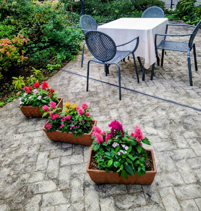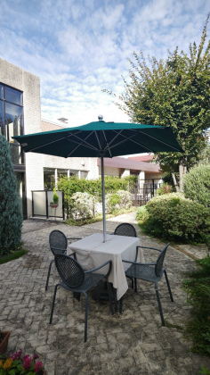 その中庭では、秋の陽射しの下中庭散策の時に一休みして頂けるように・・・。