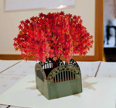 この二つのモミジ、実は立体的な「グリーティングカード」なんです。