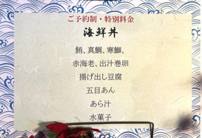 本日は、皆様が楽しみにされていた海鮮丼御膳をご用意。