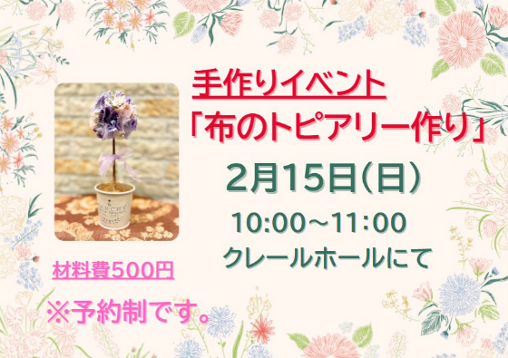 2月15日に手作りイベント「布のトピアリー作り」を開催しました。