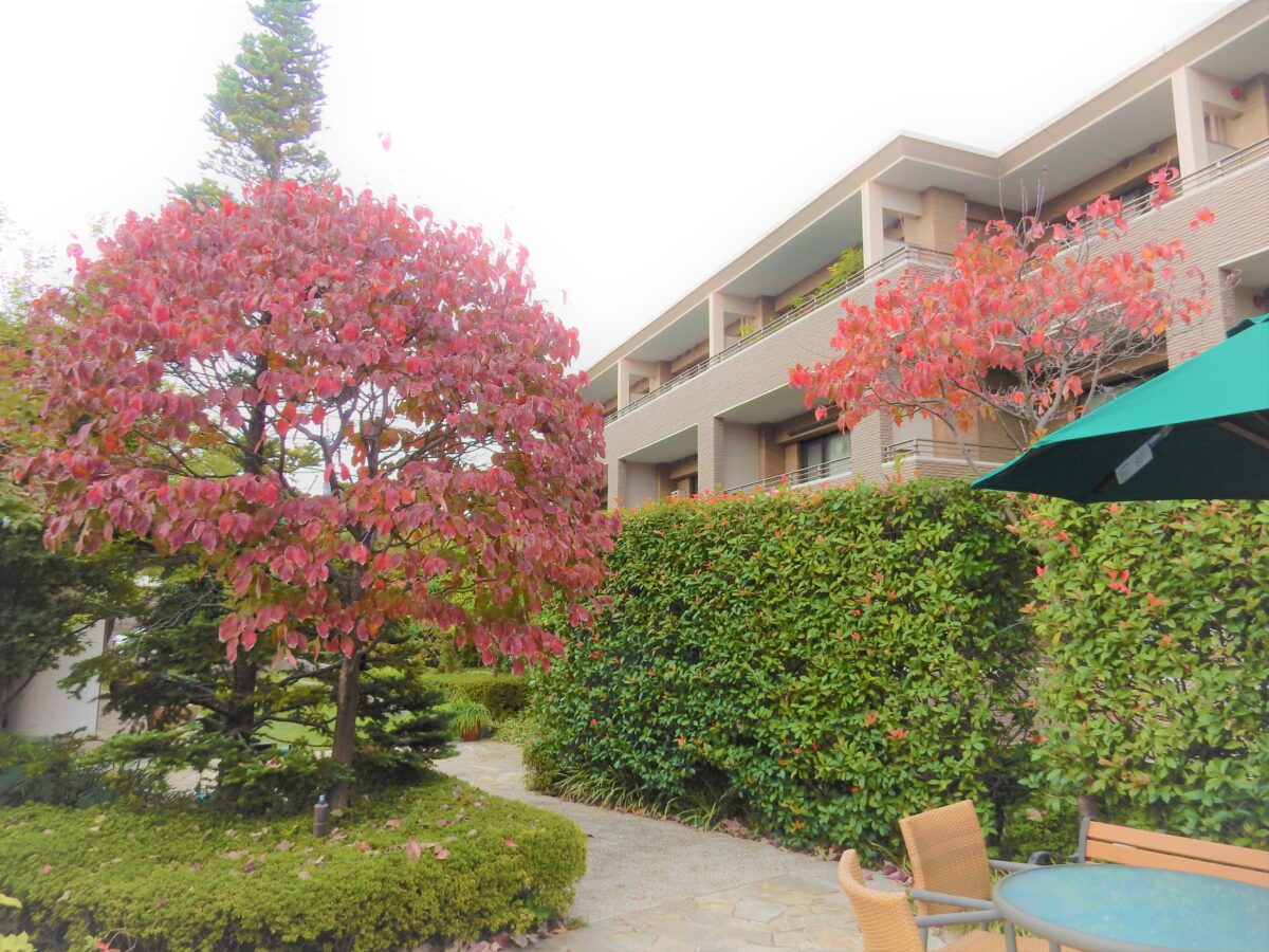 中庭ではハナミズキが紅葉を迎え、秋らしい彩りに溢れています。