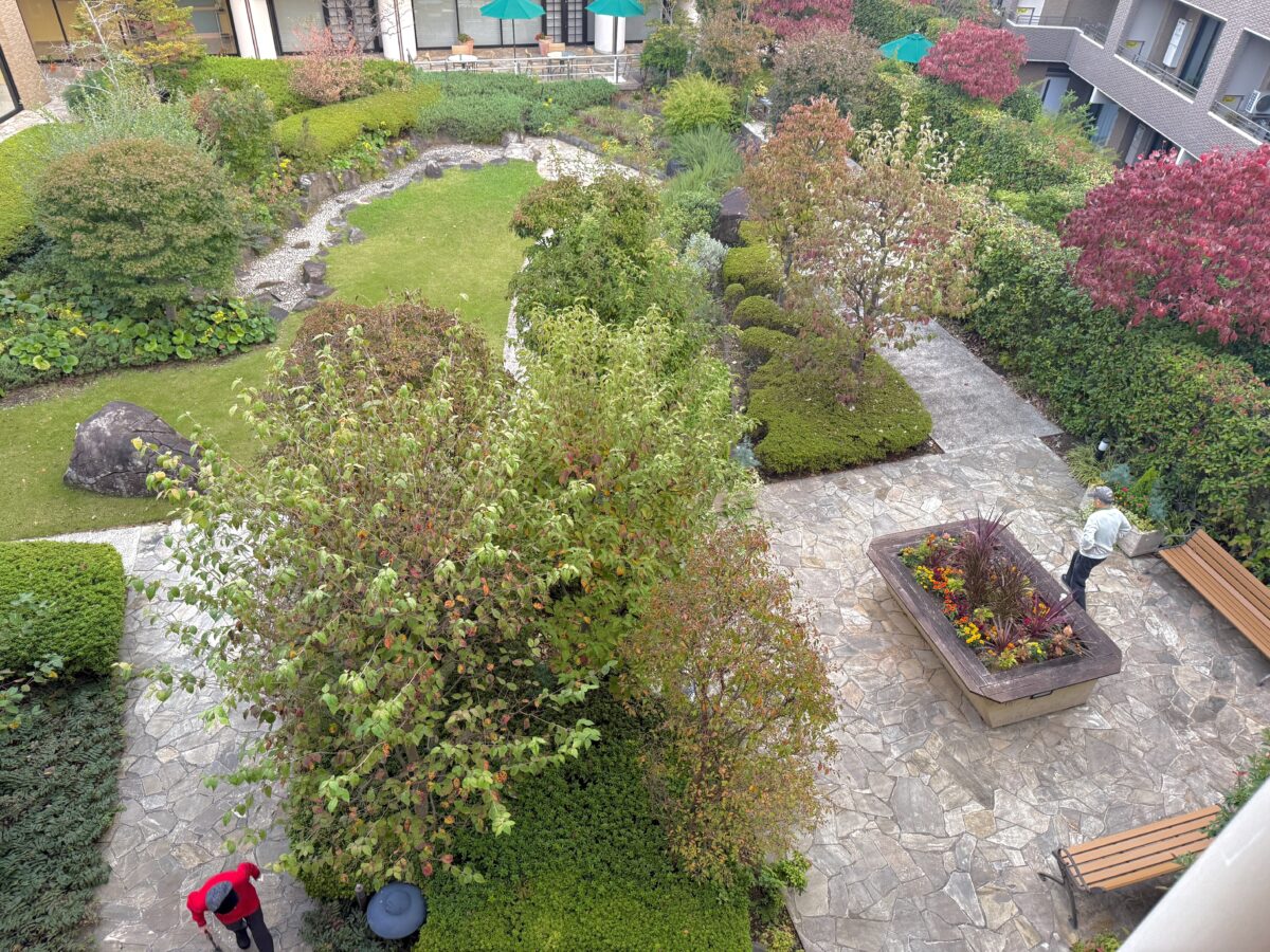 中庭では、ストレッチをする方、お散歩されている方がいらっしゃいます。