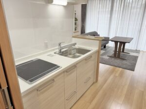 左手にシンクとIH2口コンロを備えた使いやすい配置となっております。