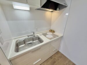 キッチンは左手にシンクとIH2口コンロを備えた使いやすい配置となっております。