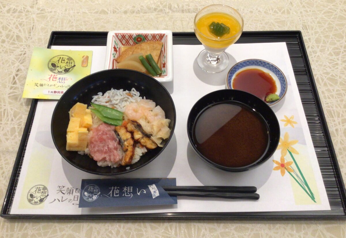 海の幸のどんぶりは しらす・えび・うなぎを少しずつ 柔らかく食べやすいようにご用意しました