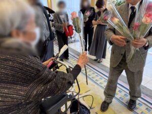 今回のスタンド花は1本ずつご入居者にお渡しできる豪華な仕様。
