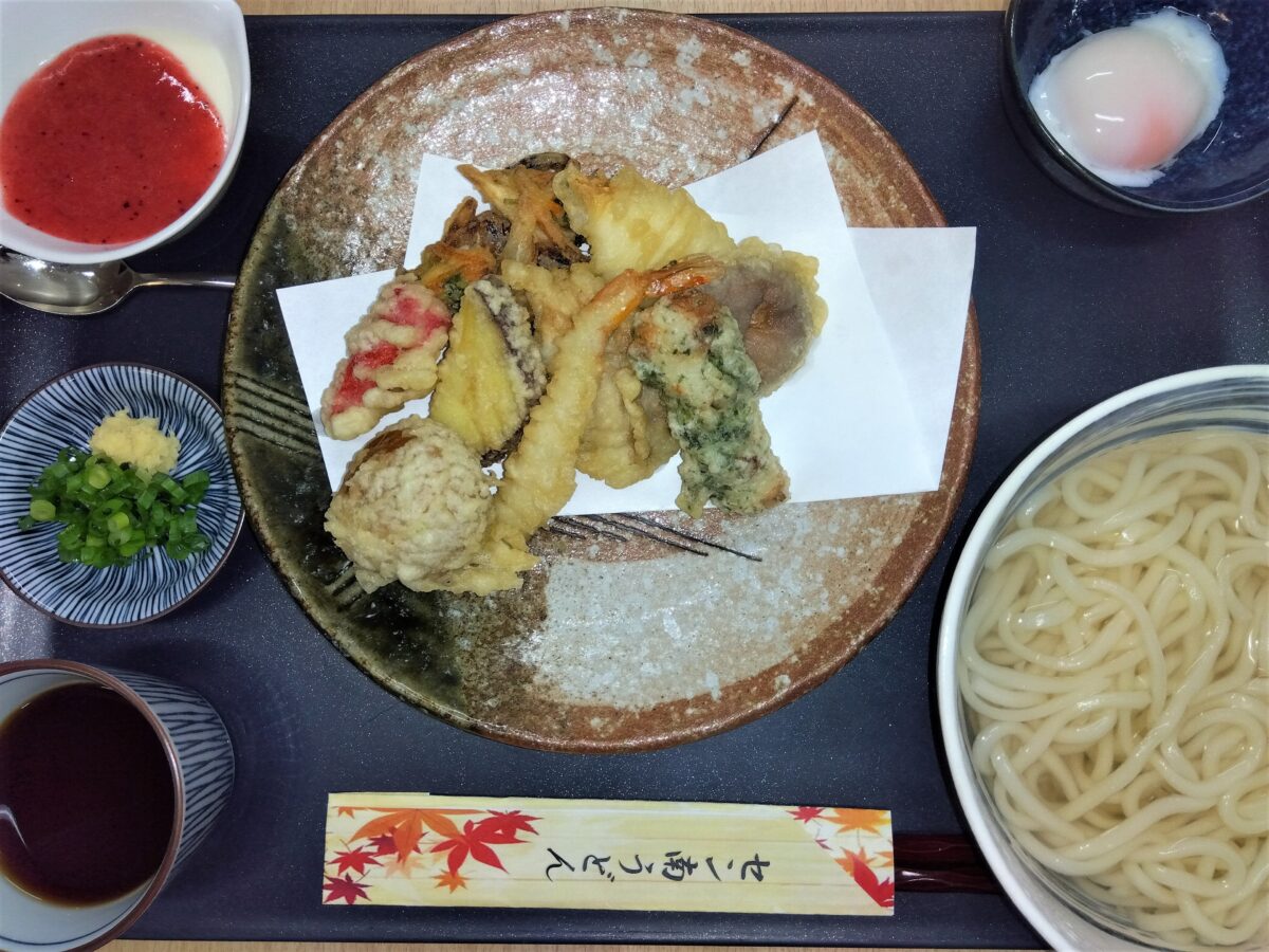 海老天 野菜のかき揚げ天 烏賊天 竹輪の磯辺天