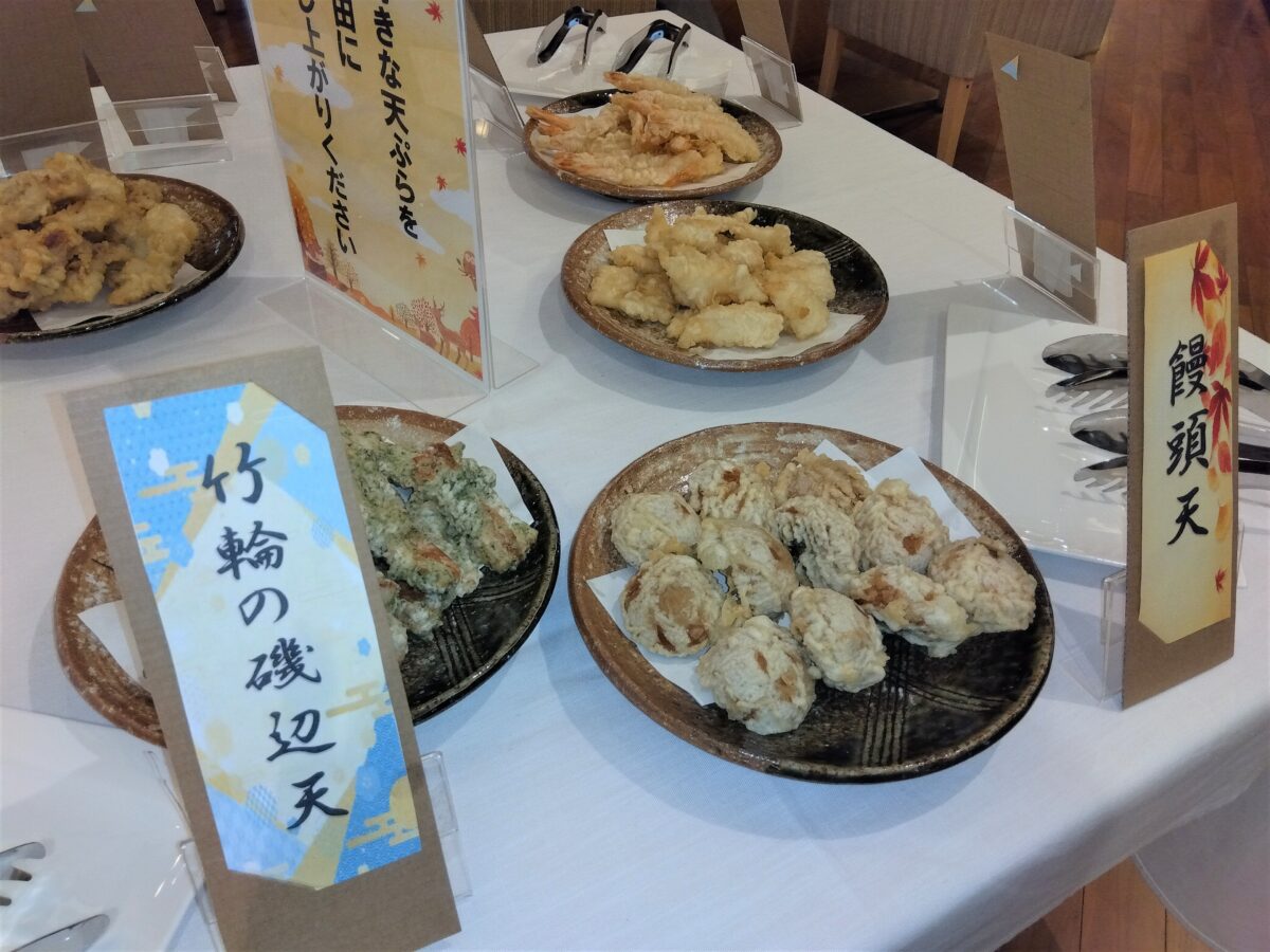 さつま芋天 椎茸天 かしわ天 かにかま天 饅頭天