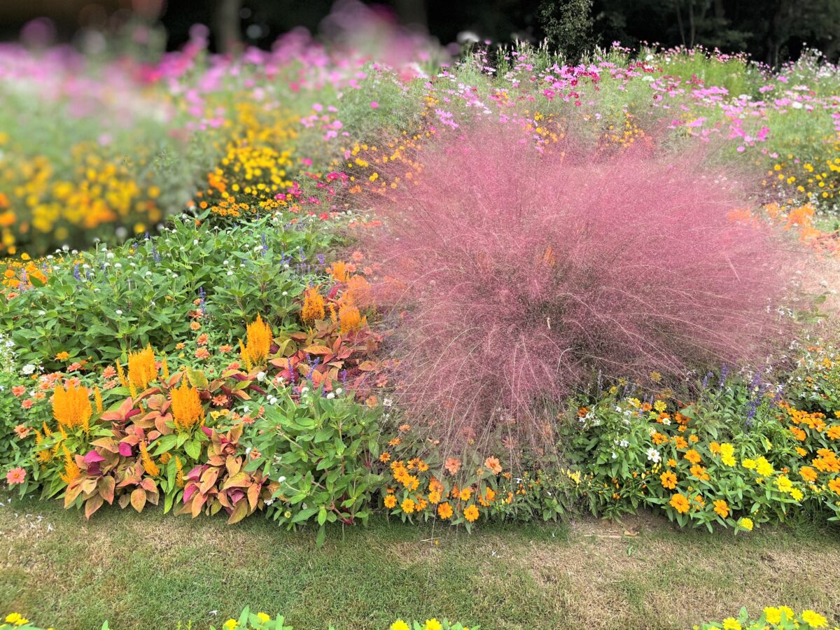 今秋は「夕焼け色の丘」をテーマにあたたかみのある色彩のグラデーションの花壇に仕上げたとのこと。