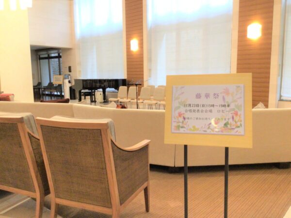 2日目は作品展と合唱の発表会をおこないます。グランクレール藤が丘の合唱イベントの皆様はクレールハーモニーという名前で活動されています。1年かけて練習した曲を「藤華祭」の締めくくりにご披露いただきました。