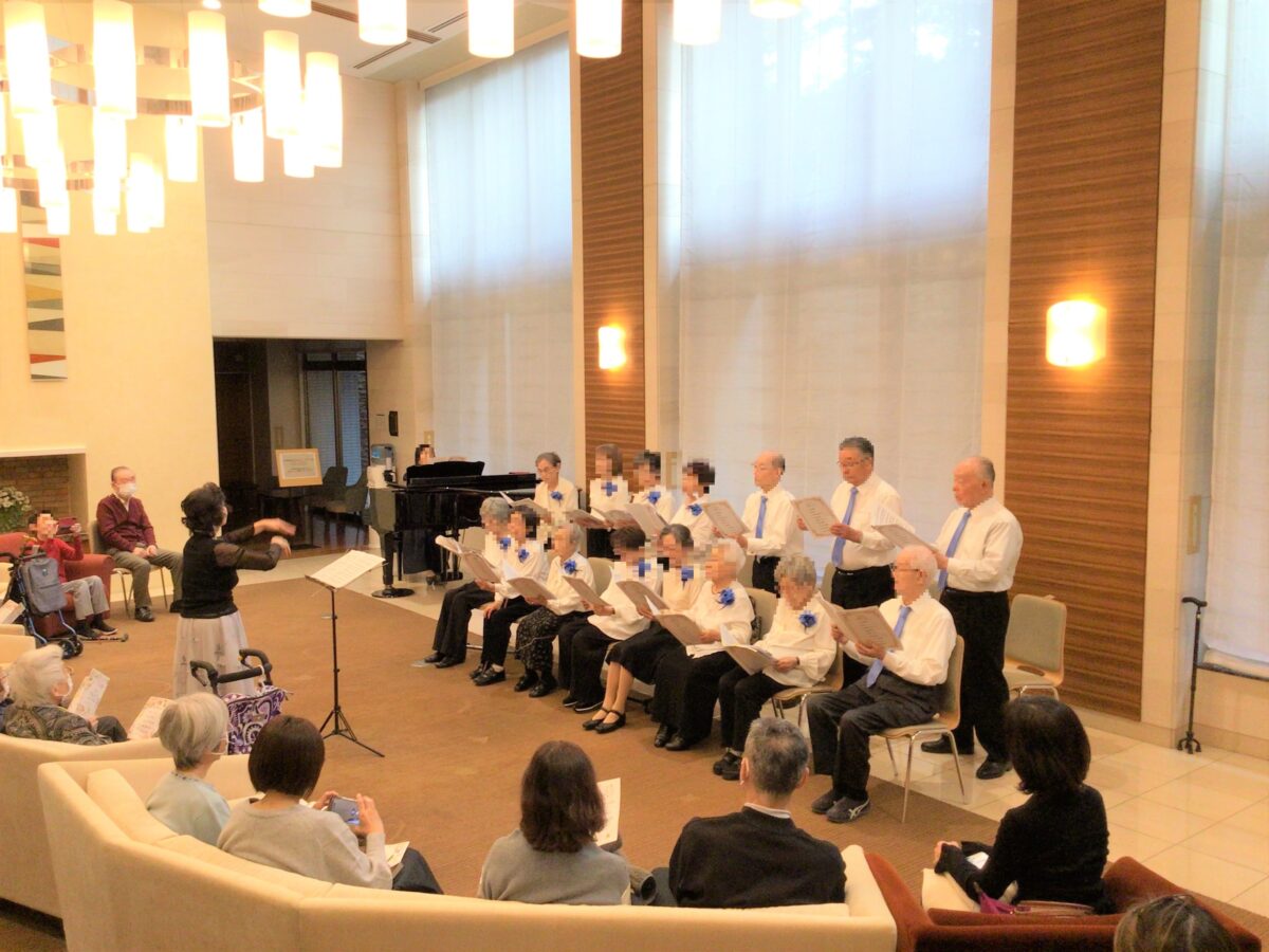 最後に観客のご入居者様やご家族様と一緒に2曲歌って終了するはずがアンコールのお声がかかりクレールハーモニーの皆様にもう一度「よろこびの歌」を歌っていただきました。