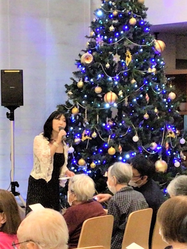 そして終盤には、「きよしこの夜」をご入居者の皆さまとご一緒に三部合唱で歌いました