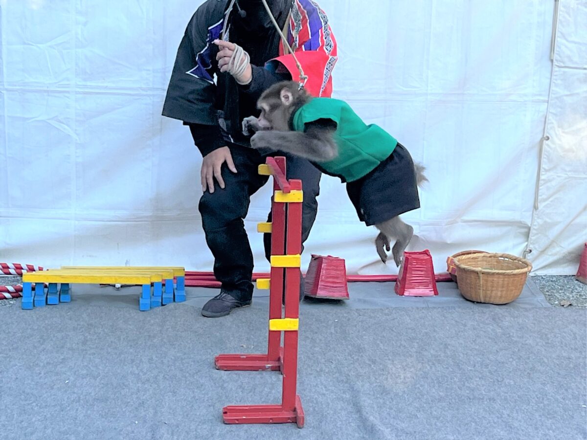 境内では、軽快な語りと愛らしい動きが楽しい猿回しも披露され、思わず笑顔がこぼれるひとときに。新年の始まりにふさわしい、明るく和やかな時間となりました。