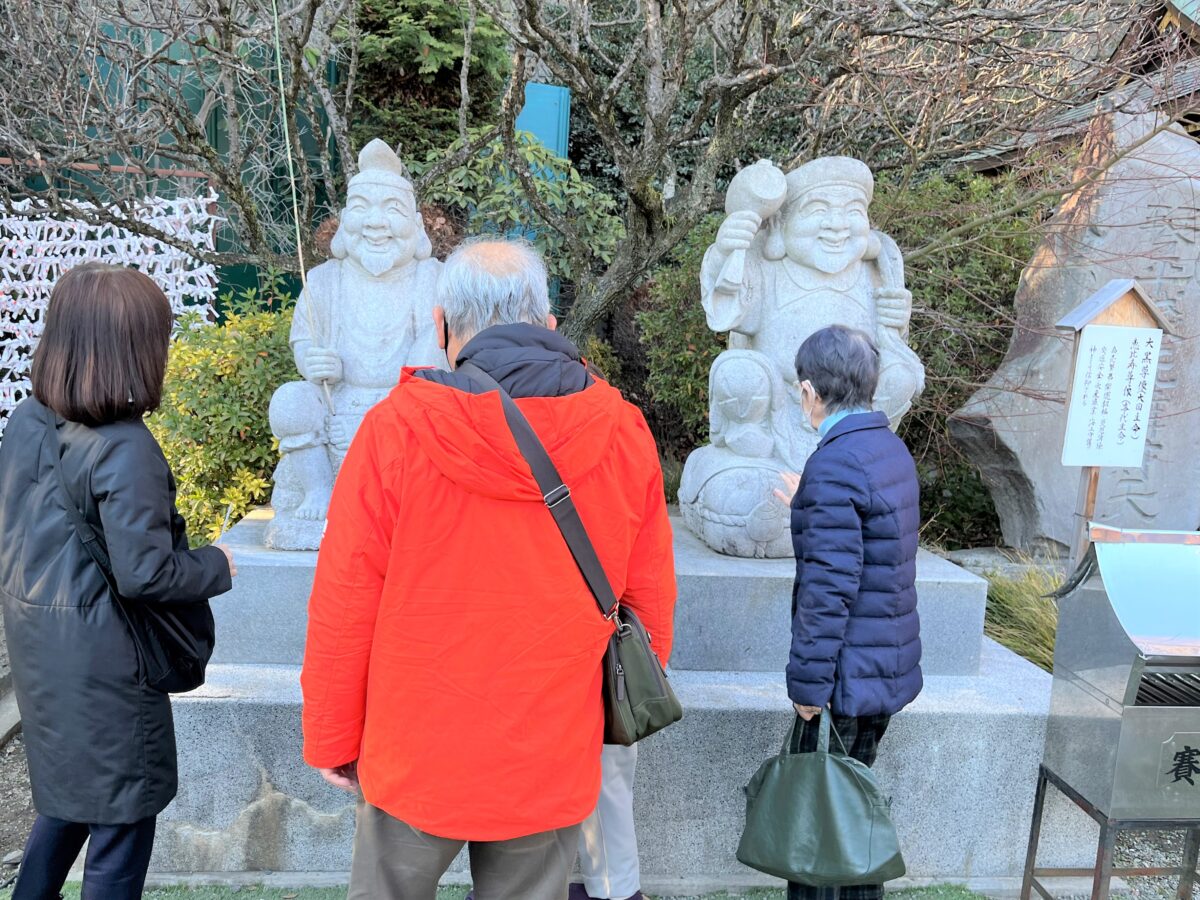 銭洗い弁天では、「お金が増えますように」「福が訪れますように」と願いを込めて銭を清め、大黒様と恵比寿様にもご挨拶し笑顔あふれる一年への願いを新たにしました。