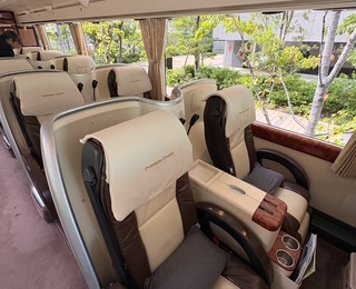 「ラグジュアリーバス」とは、高級ホテルや飛行機のファーストクラスのような豪華な造りの大型バス。通常30席ある広さにわずか10席だけの特別な空間です。