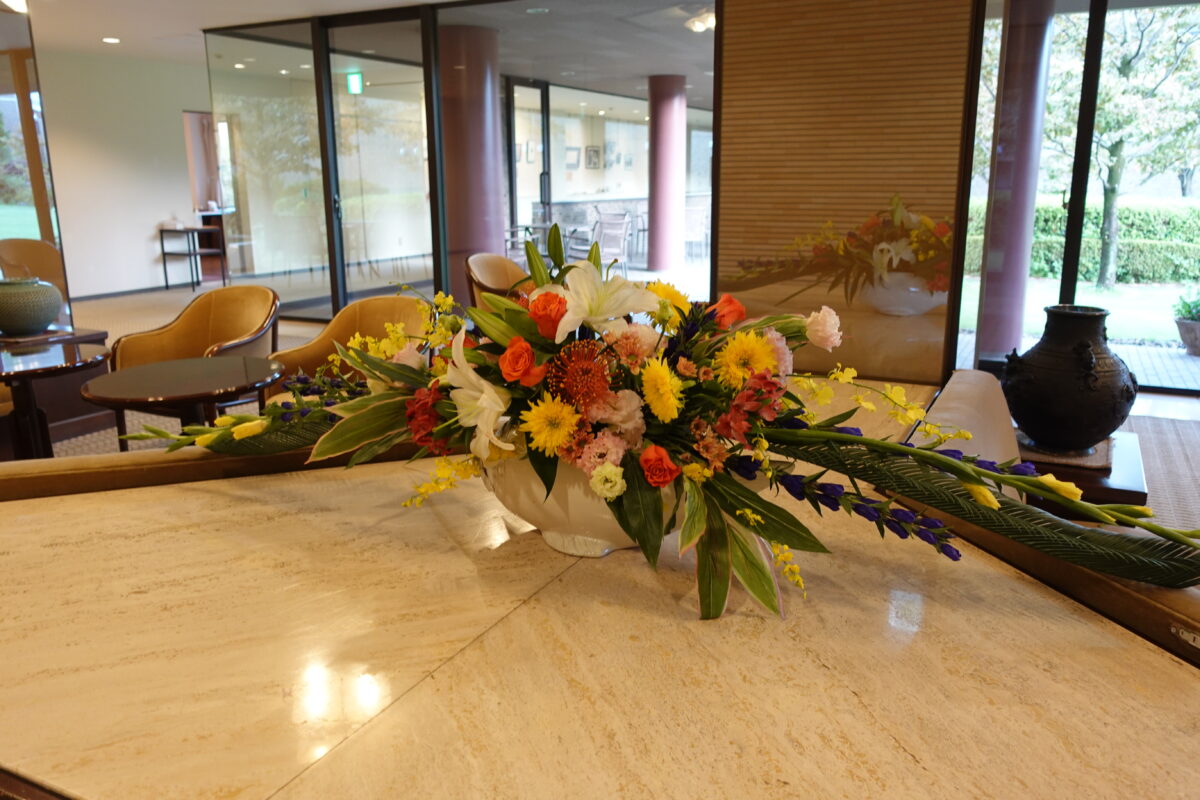 ご入居の皆様も立ち止まって「素敵だね」「こんな風に活けるなんて発想思い浮かばないな」等々、