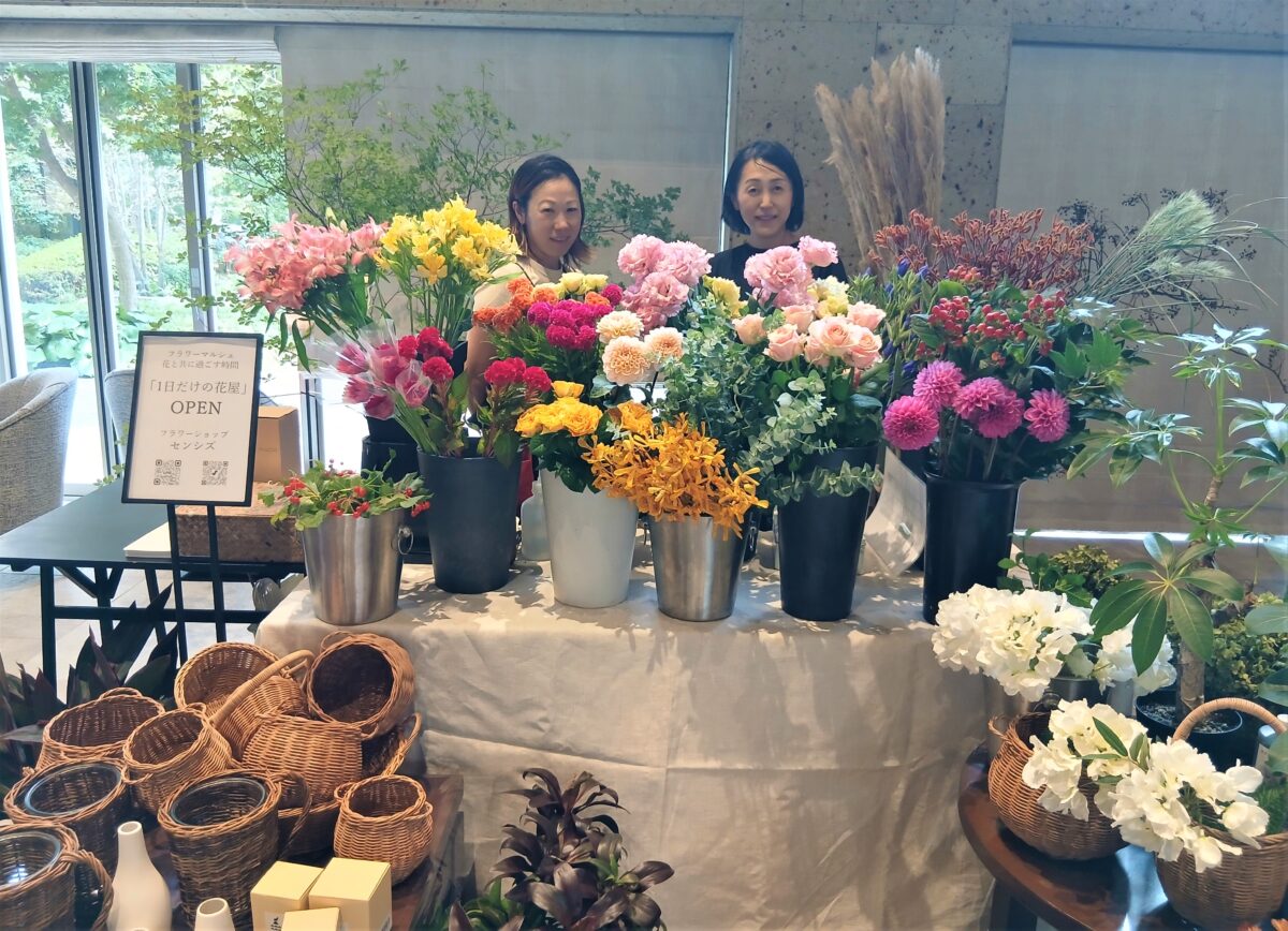 本日は桜新町の御花屋さんをお呼びして、ロビーで販売会をしていただきました。
