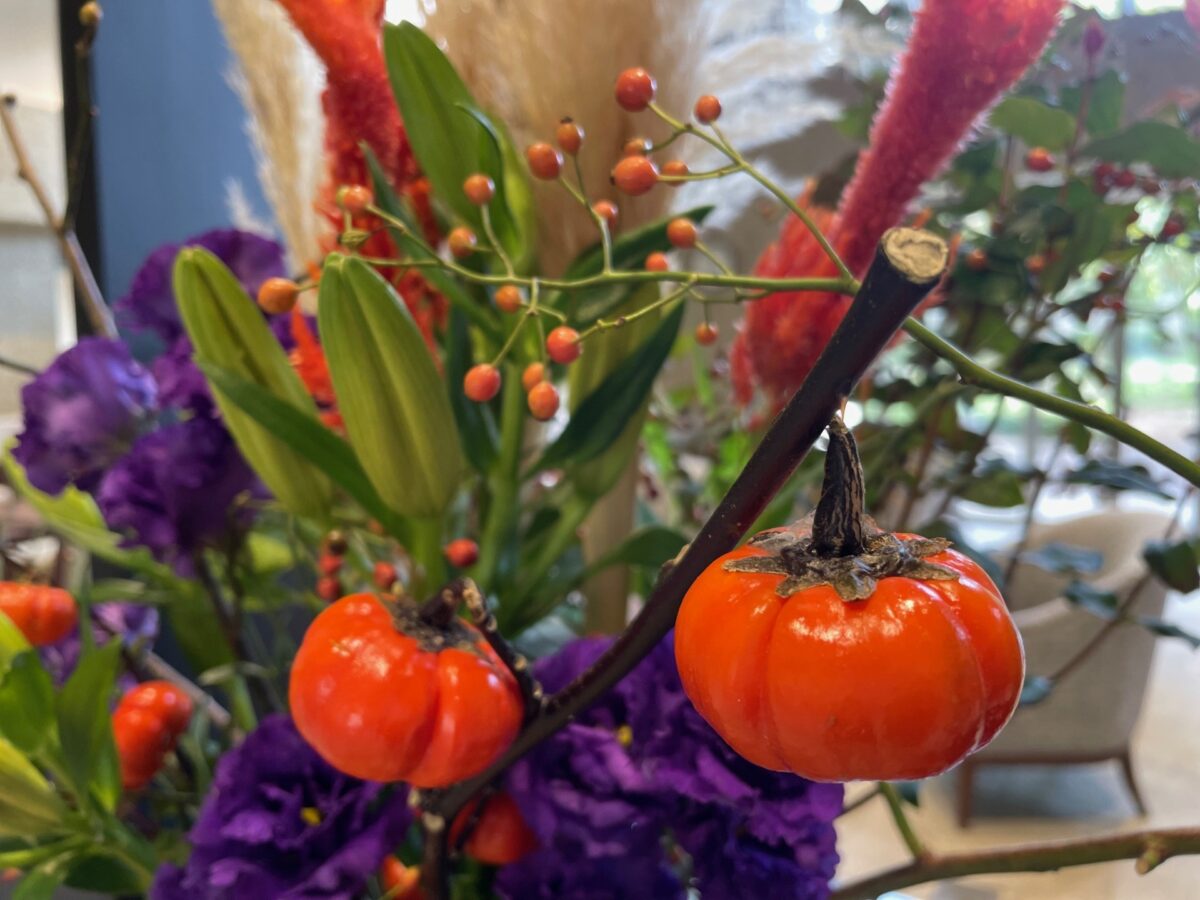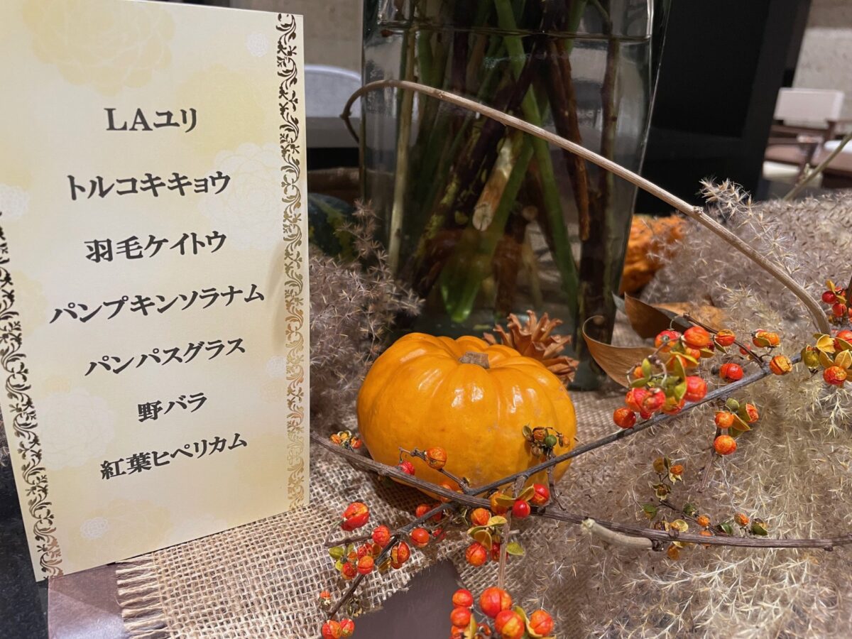 沢山の花材とかぼちゃが賑やかにお出迎え致します!