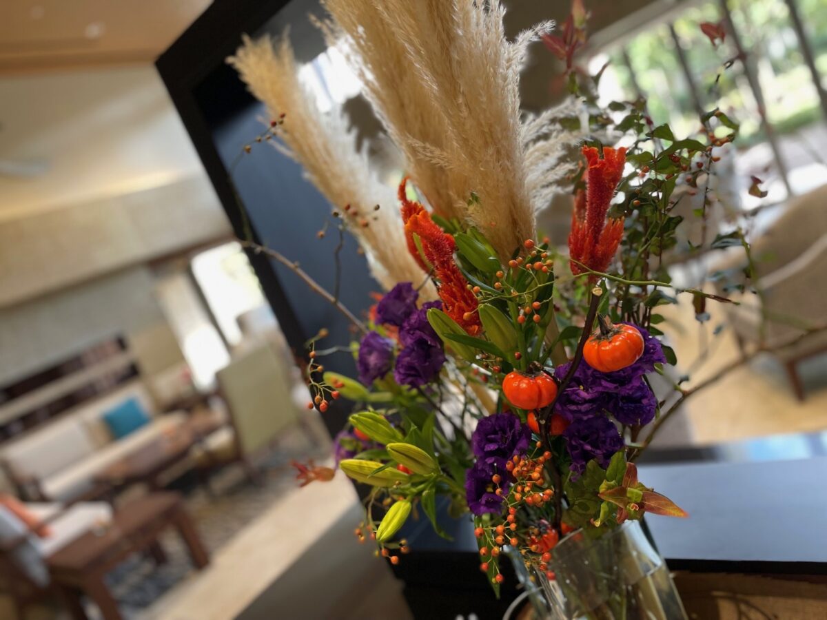 グランクレール世田谷中町のエントランスにHappy Halloweenのフラワーアレンジが飾られました!オレンジやパープルのハロウィンカラーとふさふさとした羽毛ケイトウがハロウィンの雰囲気を盛り上げてくれます!