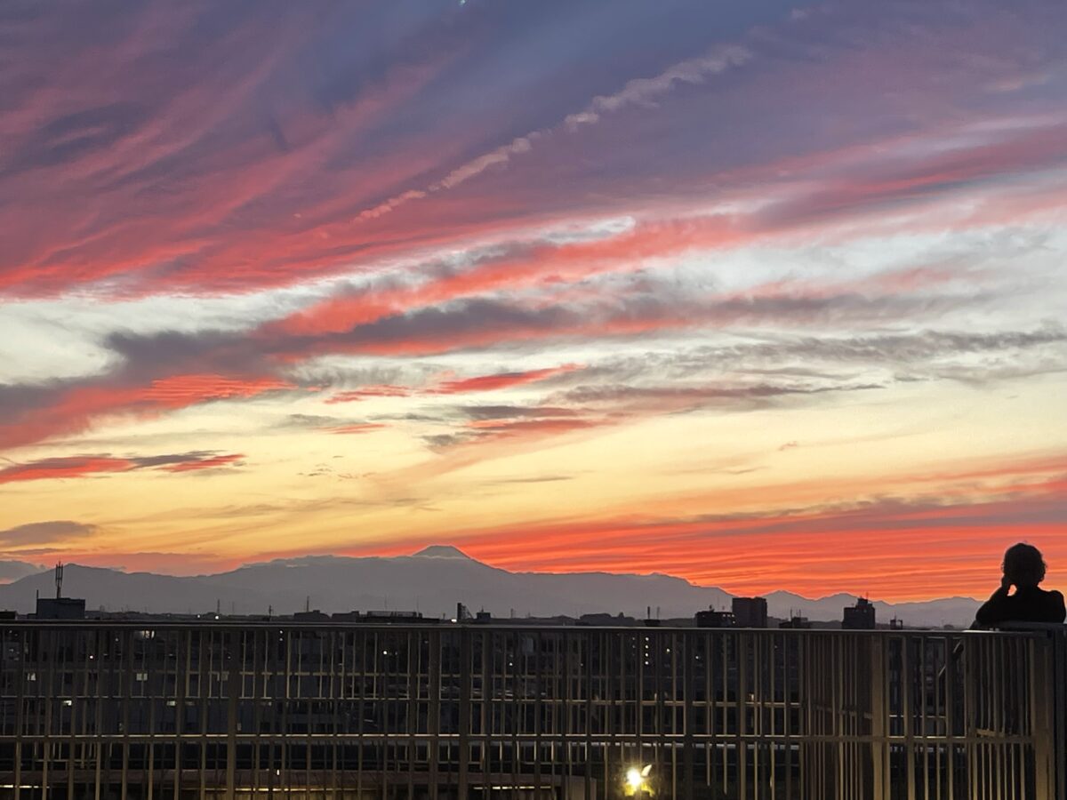 11月に入り、急に気温が下がり朝晩は秋から冬の空になりつつあります。ここグランクレール世田谷中町の屋上ガーデンレジデンスからの夕陽の空は富士山を見通し、幻想的な眺めになります。