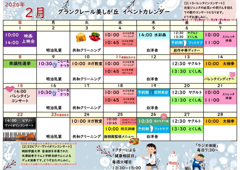 グランクレール美しが丘 2月のイベント予定のお知らせ