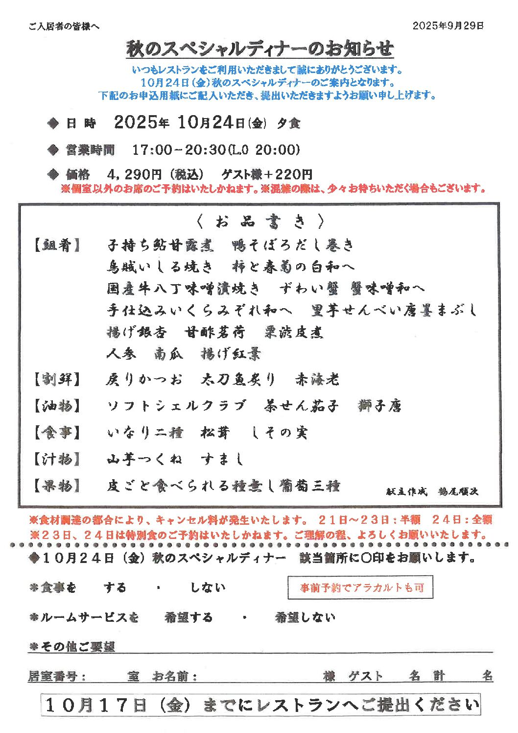 節分 2025 2/05 グランクレール成城 お食事 2025年2月5日 「鬼は~外!福は~内!」今日は節分です。夕食の恵方巻きが、料理長手作りの握り寿司と一緒に並びます。お配りした豆のケースはスタッフ手作りのもの。ムキムキの鬼が密かに写っています。邪悪なものから守ってくれる頼もしい支配人です。 これからも皆様が安心してお過ごしになれるようお祈りしております。 グランクレール成城 お食事