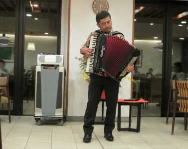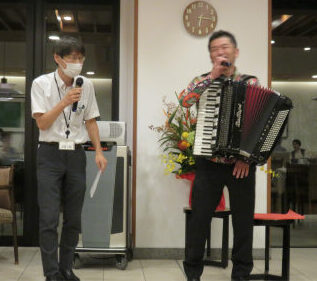 9/17 15周年記念ディナーサプライズ 2025 9/19 グランクレール成城 2025年9月19日 グランクレール成城は本日9/17で開設15周年を迎え皆様には記念ディナーの際にサプライズでアコーディオン演奏をお楽しみ頂きました。 演奏はテレビ・舞台などで幅広くご活躍の田ノ岡三郎さん、サプライズでダイニングに演奏しながら登場していただきました。手拍子される方、歌を口ずさむ方、記念ディナーのひと時をお楽しみ頂きました。 「良かったわ」「楽しかった」お帰りの際は笑顔が見られました。 グランクレール成城