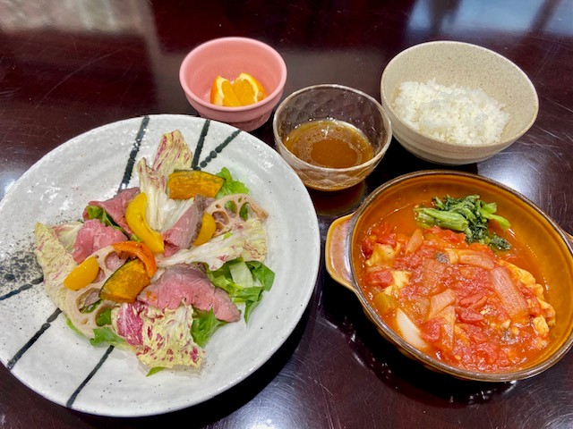 🥬彩り野菜とローストビーフのサラダ 和風ドレッシング