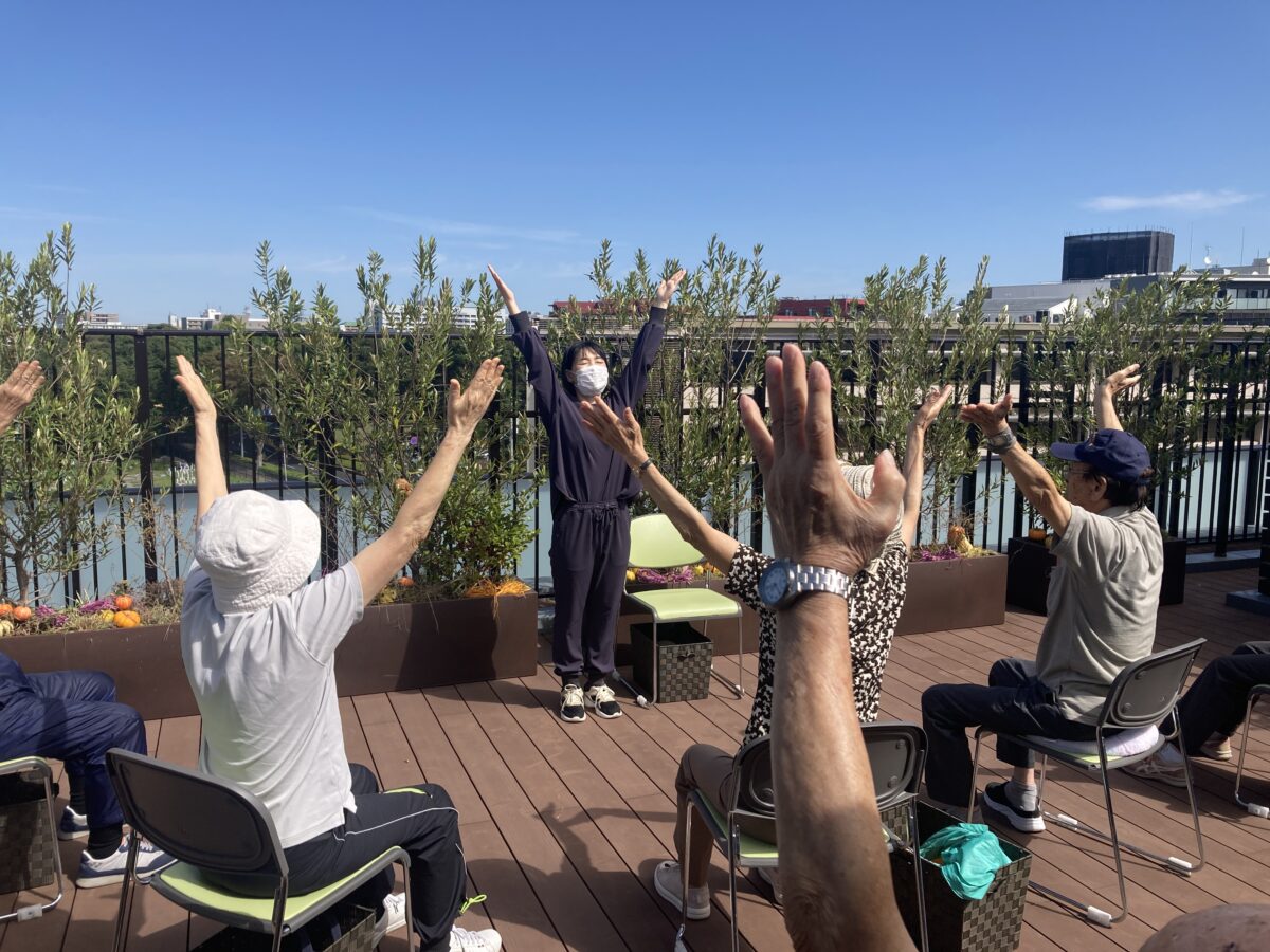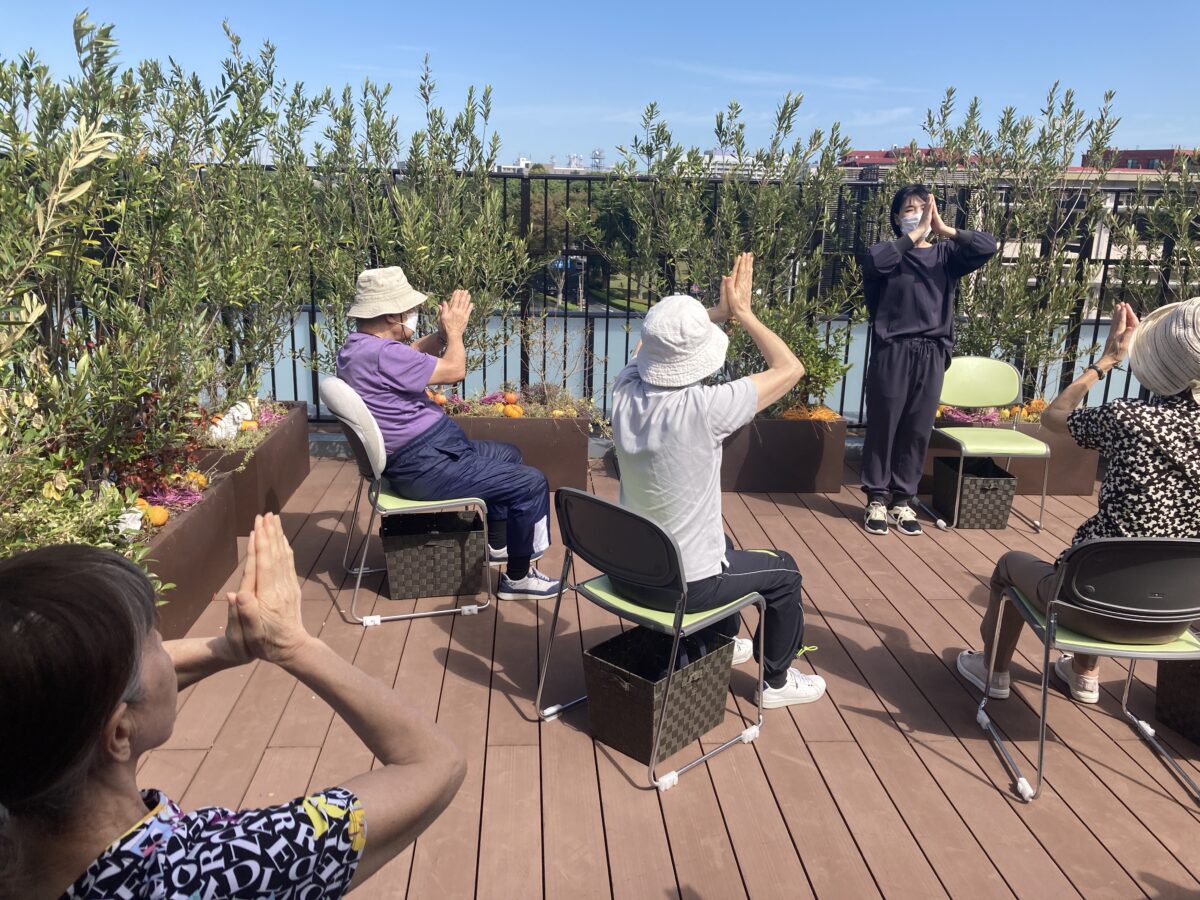 今日はルーフテラスで『チェアヨガで自分らしくリラックス』のプログラムを行いました。