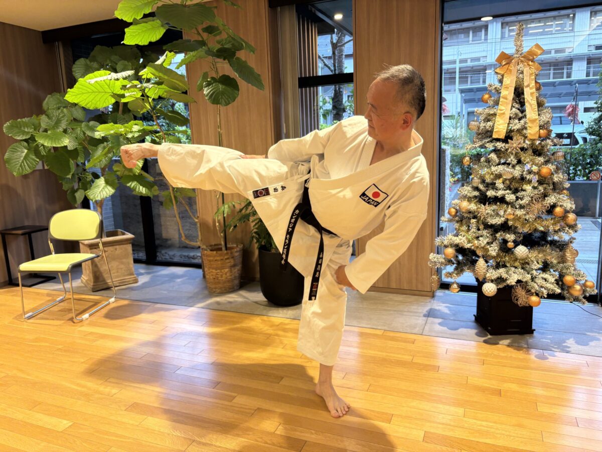 最初は型の一つ「突き」を教えていただきました。